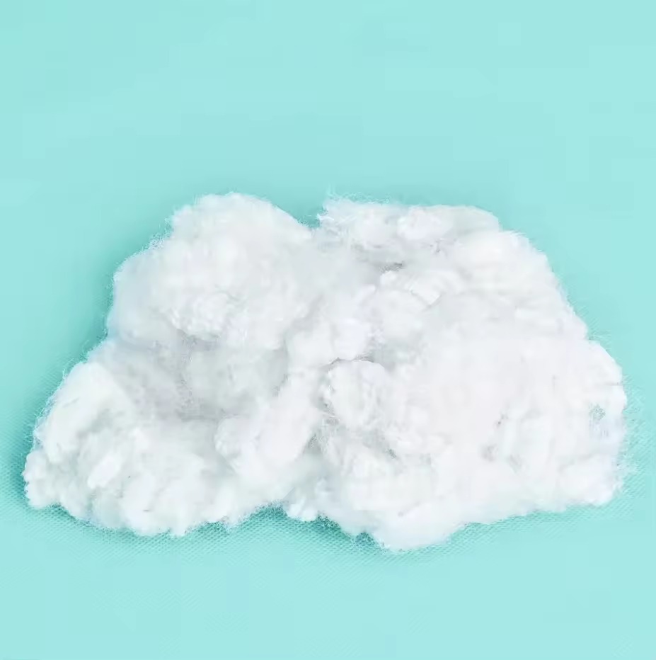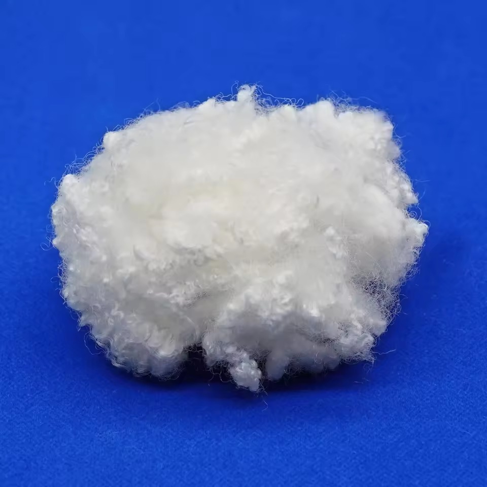 The most widely used premium fill fiber globally. HCS combines three engineered features: a hollow cross-section (air channel for warmth and lightness), a three-dimensional spiral conjugate crimp (permanent loft recovery), and a silicone surface finish (smooth, anti-clumping behavior). Used in premium pillow fill, duvet fill, stuffed toys, and down-alternative jacket insulation. Available in virgin and GRS-certified recycled (rPET) grades. Denier range: 6D–15D; staple lengths: 32–76 mm.